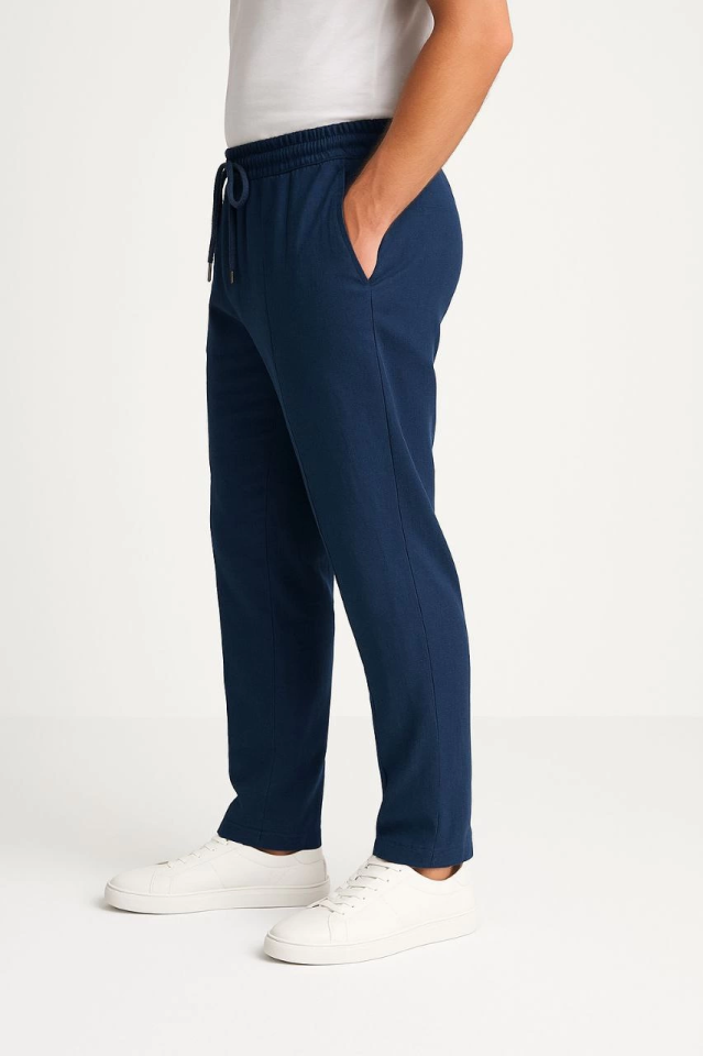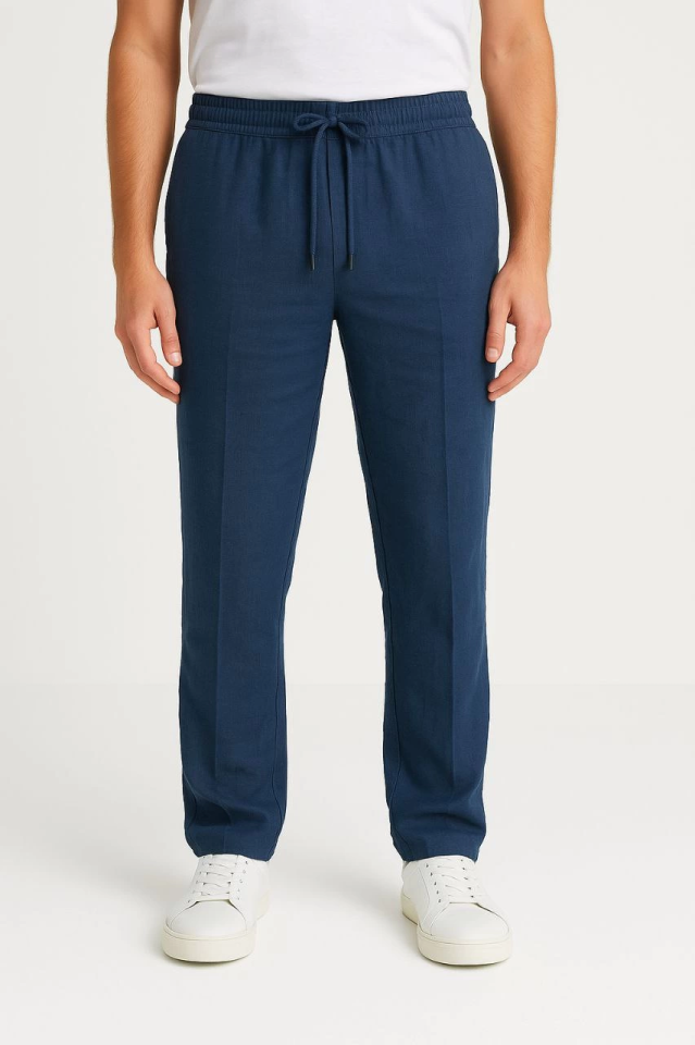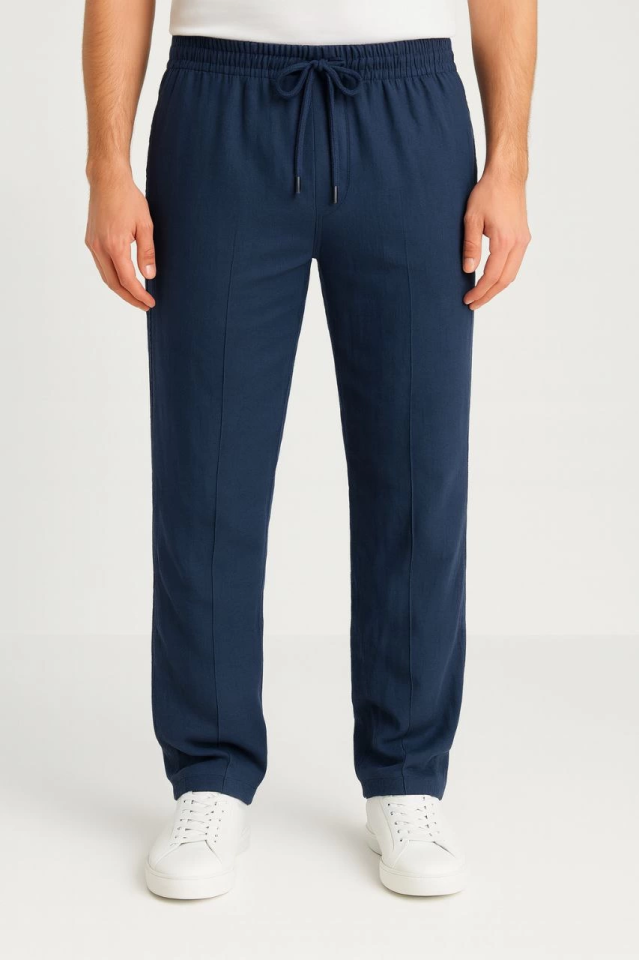 Erkek Keten Pantolon – Cepli, Beli Lastikli Ve Bağcıklı, Nefes Alan Rahat Kalıp, Yazlık Ve Baharlık Günlük Giyim, Şık & Konforlu Boru Paça Model – Lacivert