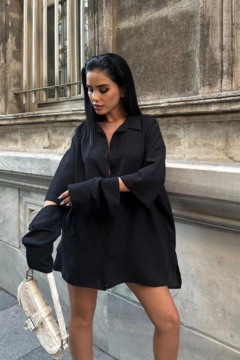 Alina Kol Cut Out Keten Gömlek 3252-08