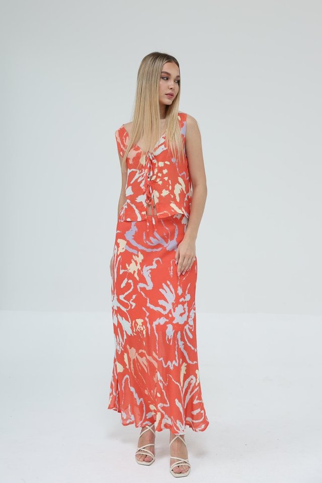 Bağcıklı Bluzlu Etek Takım – Kırmızı