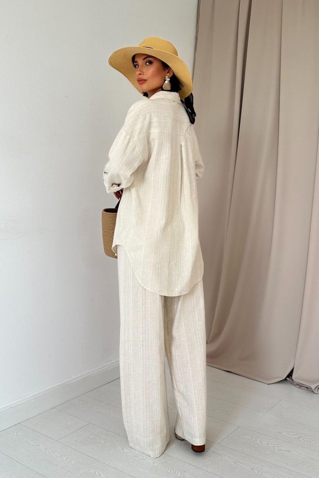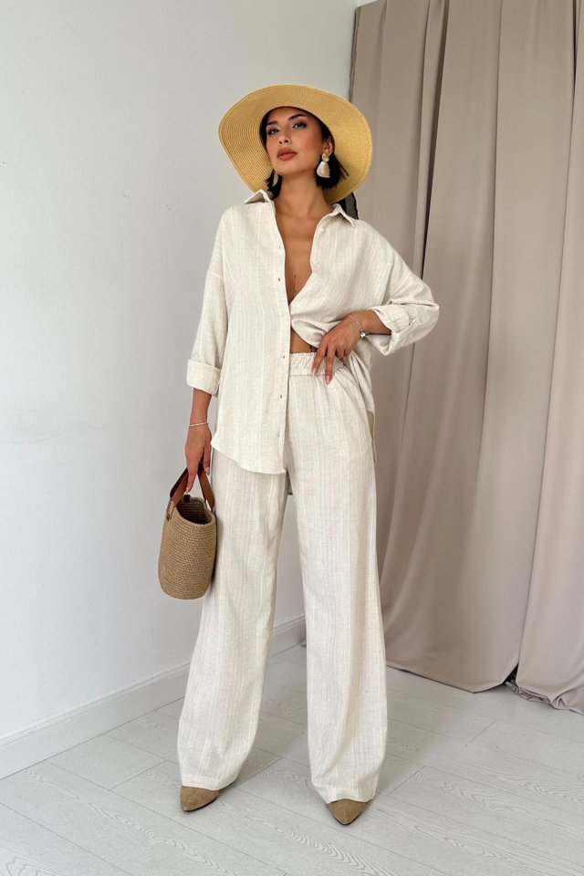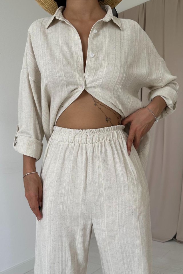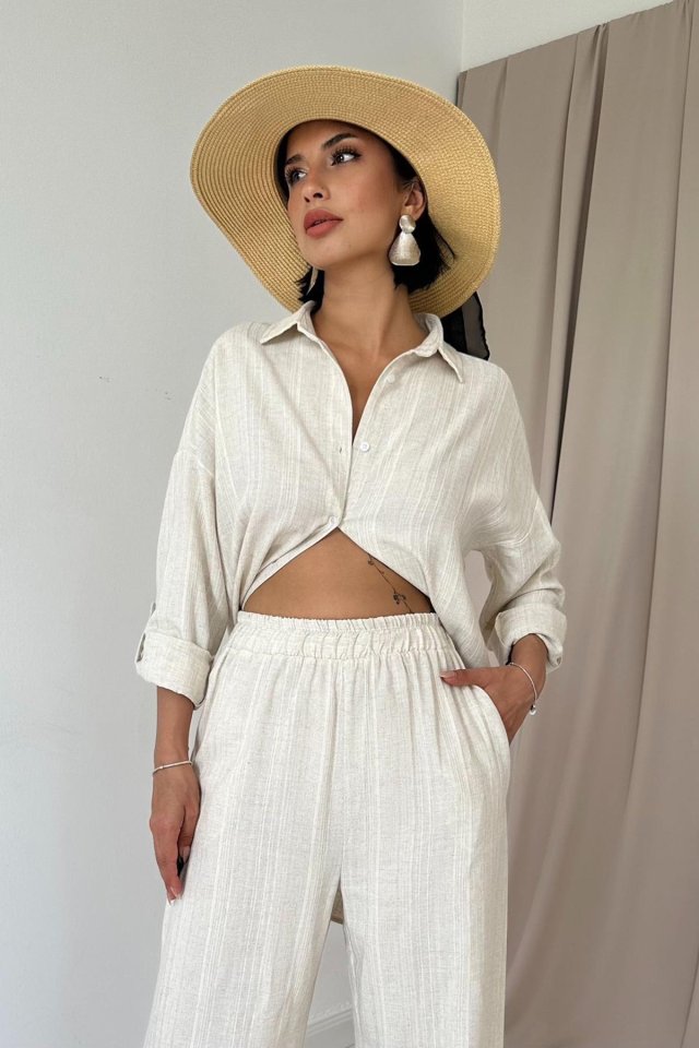 Bej Jakar Petek Gömlek Ve Pantolon Takım