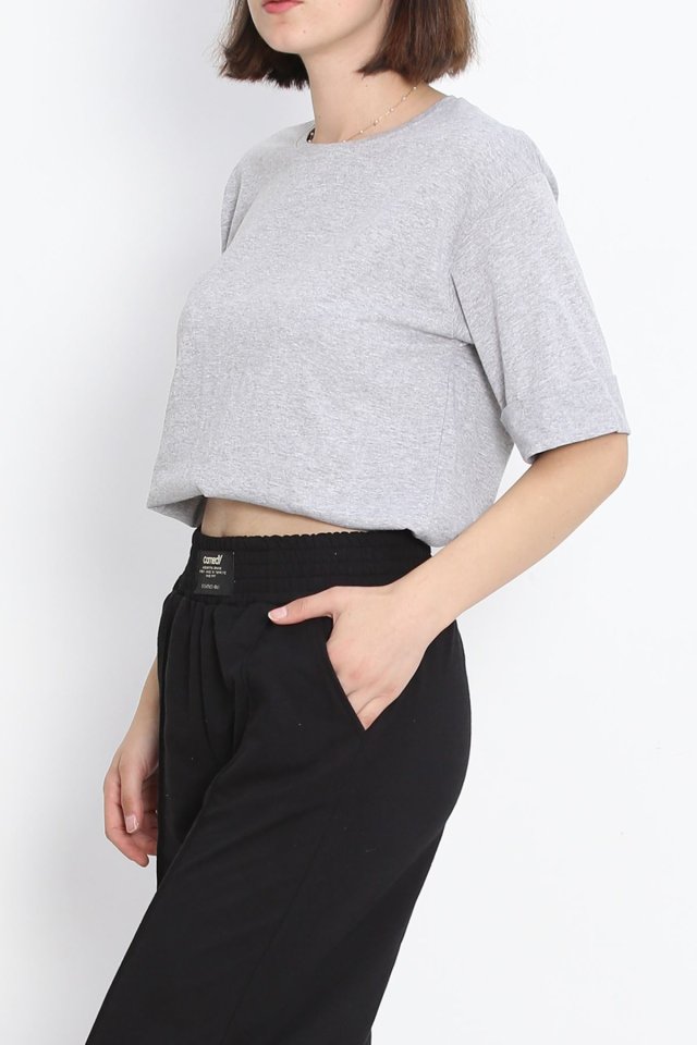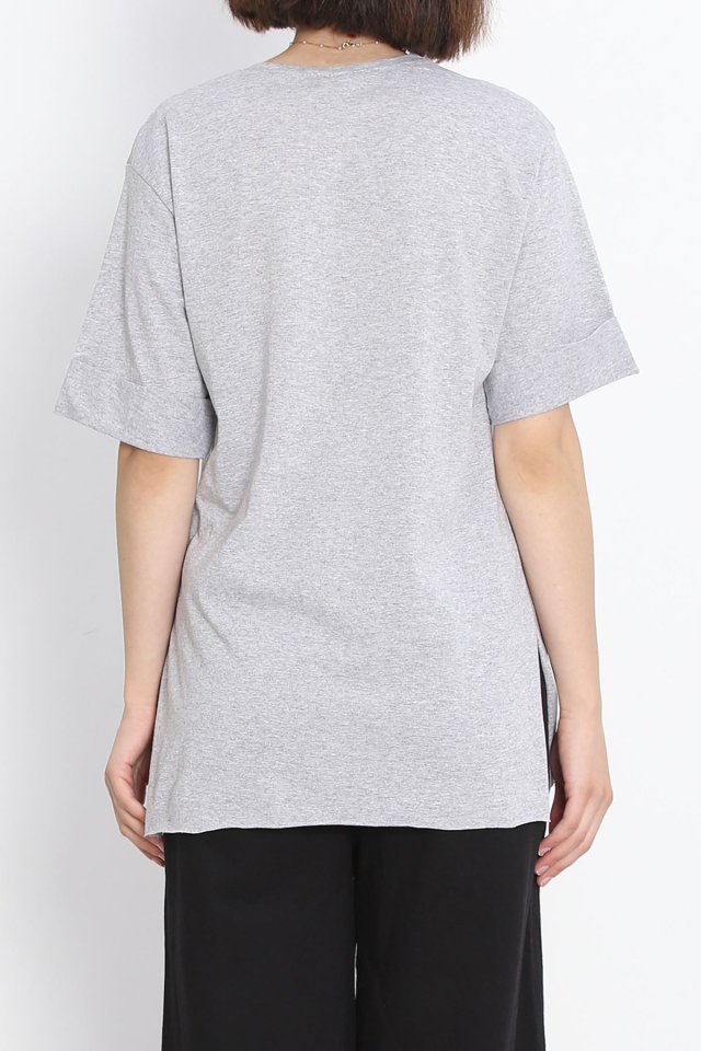 Büyük Beden Duble Kol Tişört Gri