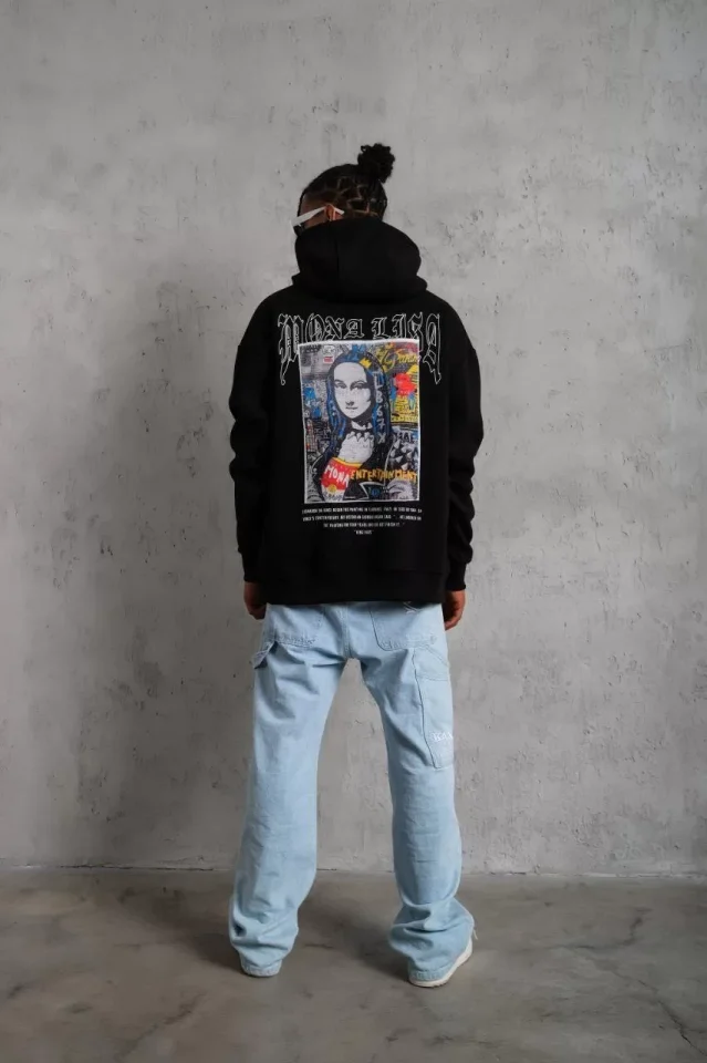 Erkek Baskılı Kapüşonlu Ve Kanguru Cepli Sweat – Siyah