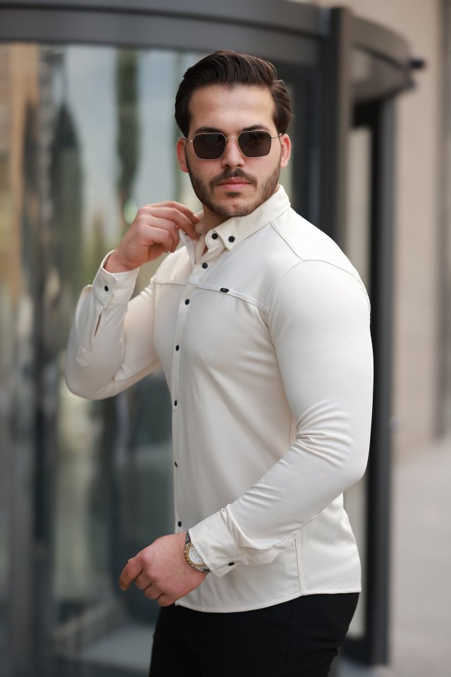 Erkek çıtçıt Düğmeli Dikiş Detaylı Uzun Kollu Gömlek