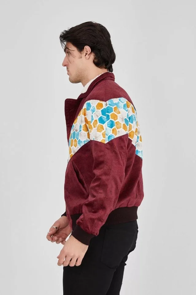 Erkek İçi Astarlı İçten Yaka Kısmı Peluşlu Beyaz Şeritli Vintage Ceket – Mürdüm