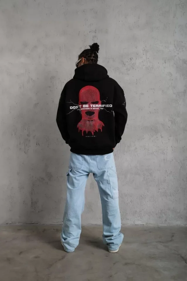 Erkek Maske Baskılı Kapüşonlu Sweat