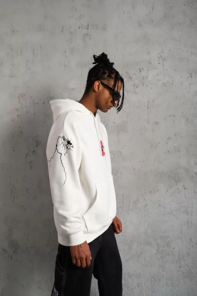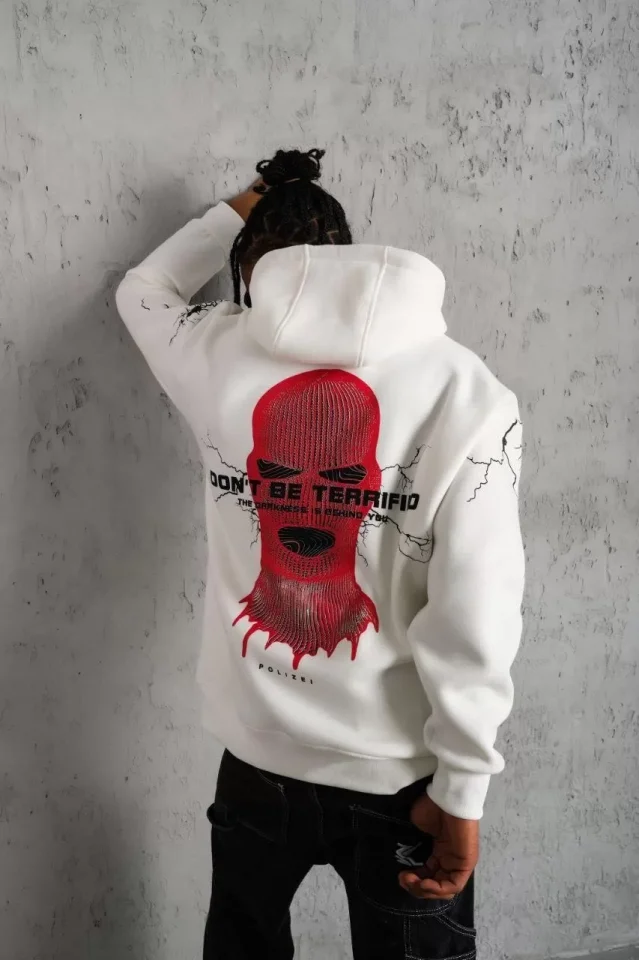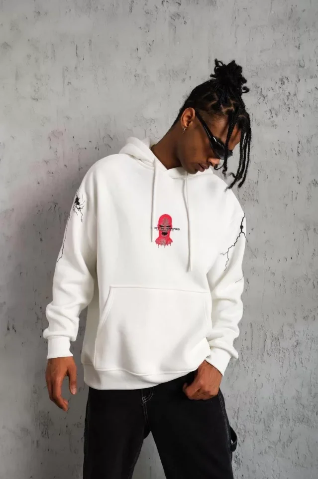 Erkek Maske Baskılı Kapüşonlu Sweat – Beyaz