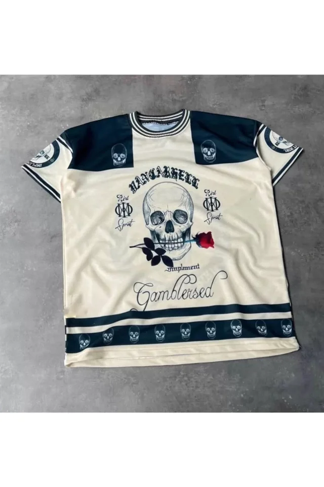 Erkek Oversize Dijital Baskılı Kuru Kafa T-shirt