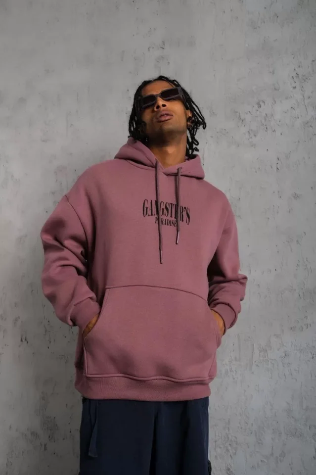 Erkek Paradise Baskılı Kapüşonlu Sweat – Gül Kurusu