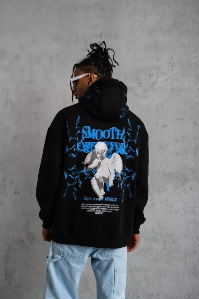 Erkek Yıldırım Baskılı Kapşonlu Sweat