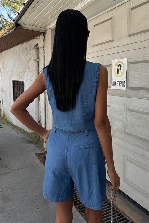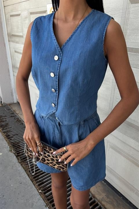 Gümüş Düğmeli Yelek Ve Şort Tensel Takım 10174