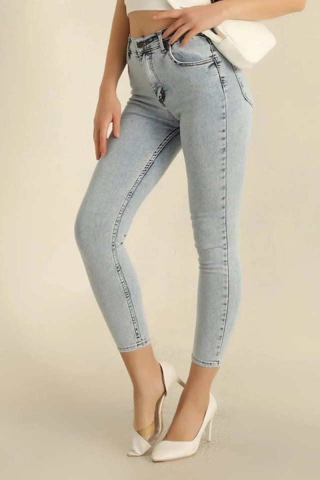 Kadın Cep Detay Kar Yıkamalı Kot Pantolon
