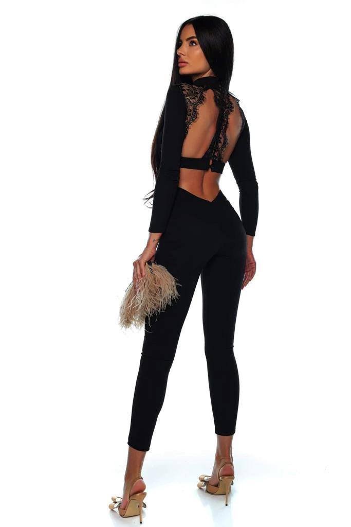Kadın Dalgıç Kumaş Sırt Dantel Detaylı Maxi Boy Tulum