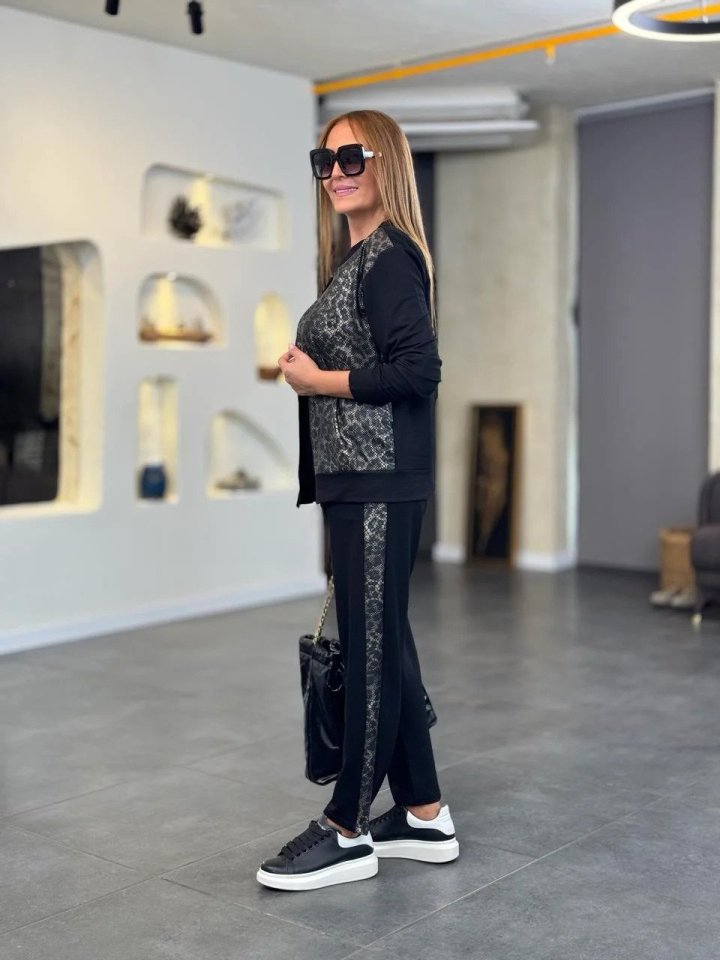 Kadın İki İplik Kumaş Yılan Desenli Fermuarlı İkili Takım