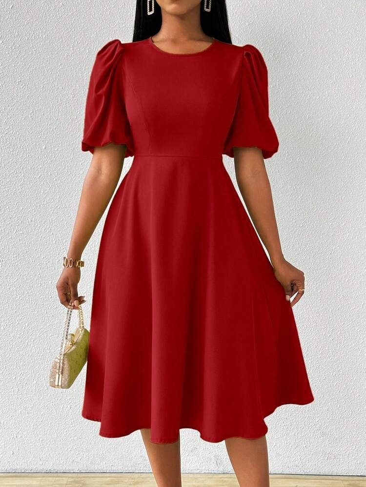 Kadın Kısa Balon Kollu Bisiklet Yaka Kiloş Janjan Krep Elbise