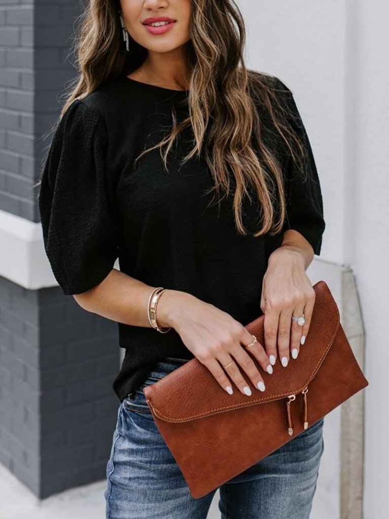 Kadın Kısa Kollu Pileli Balın Kol Bürümcük Bluz