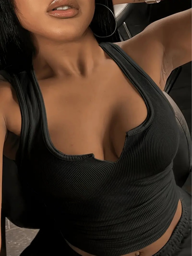 Kadın Kolsuz V Yakalı Kaşkorse Bluz