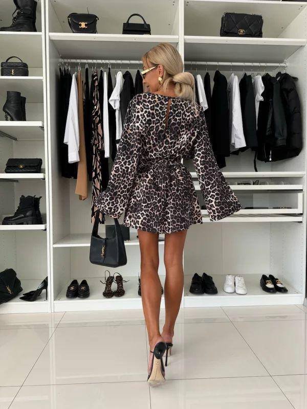 Kadın Salaş Kol Kruvaze Yaka Zebra Desen şort Tulum