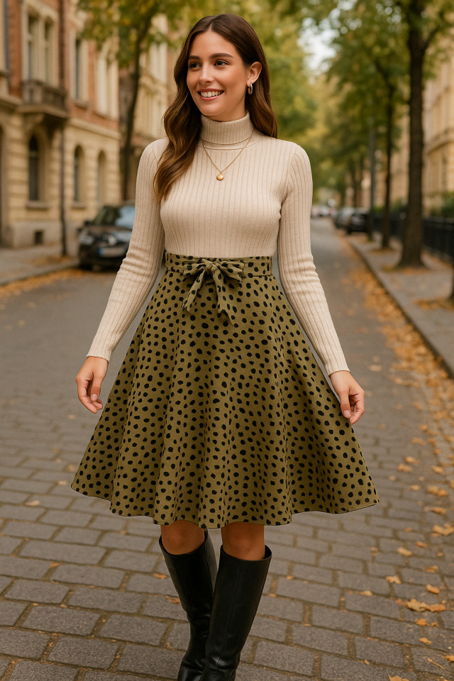 Kadın Uzun Kollu Balıkçı Yaka Belden Bağlamalı üst Kaşkorse Eteği Dalgıç Elbise