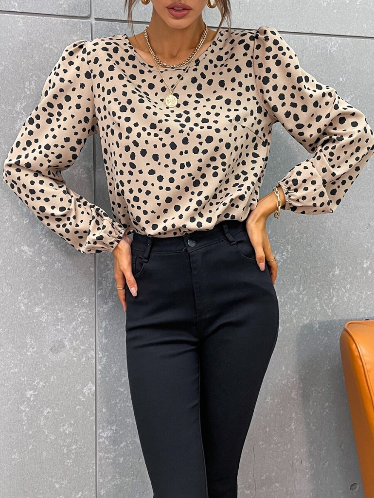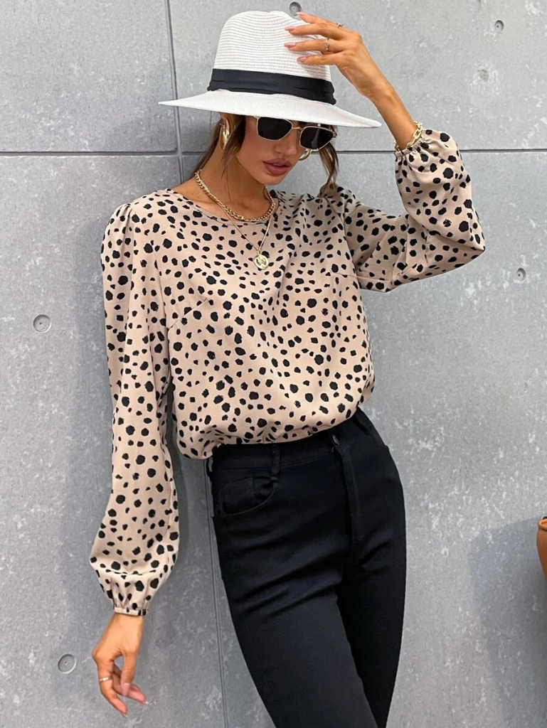 Kadın Uzun Kollu Bisiklet Yaka Desenli Bluz