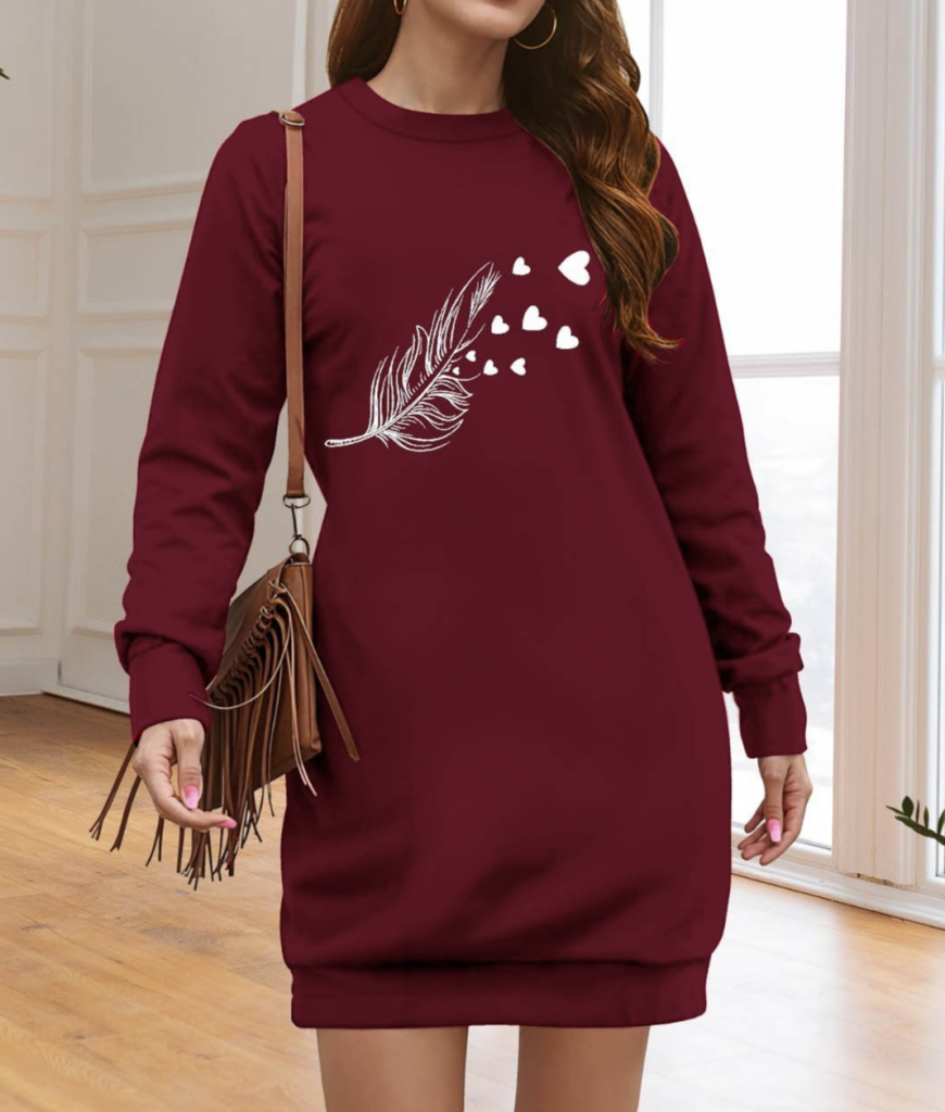 Kadın Uzun Kollu Bisiklet Yaka Desenli Viskon Iki Iplik Elbise