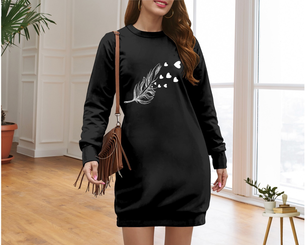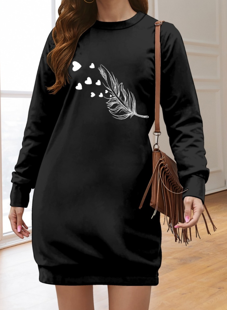Kadın Uzun Kollu Bisiklet Yaka Desenli Viskon Iki Iplik Elbise