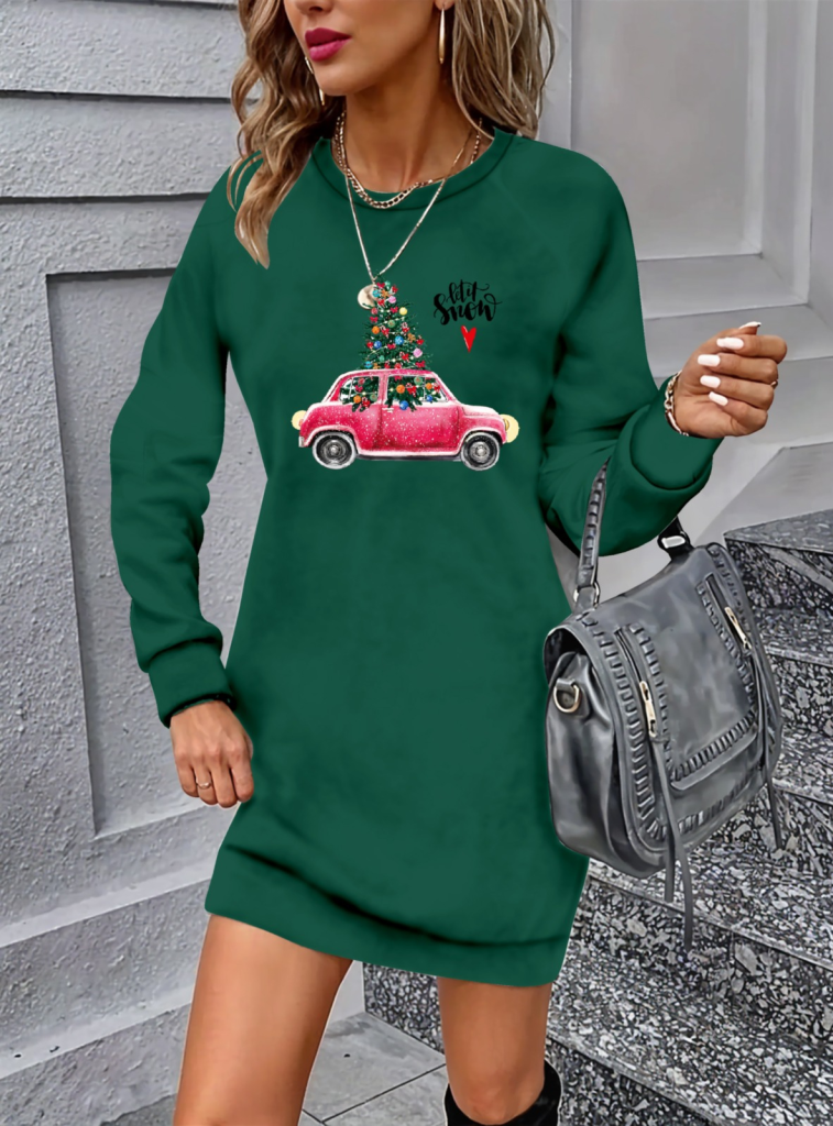 Kadın Uzun Kollu Bisiklet Yaka Desenli Viskon Iki Iplik Elbise