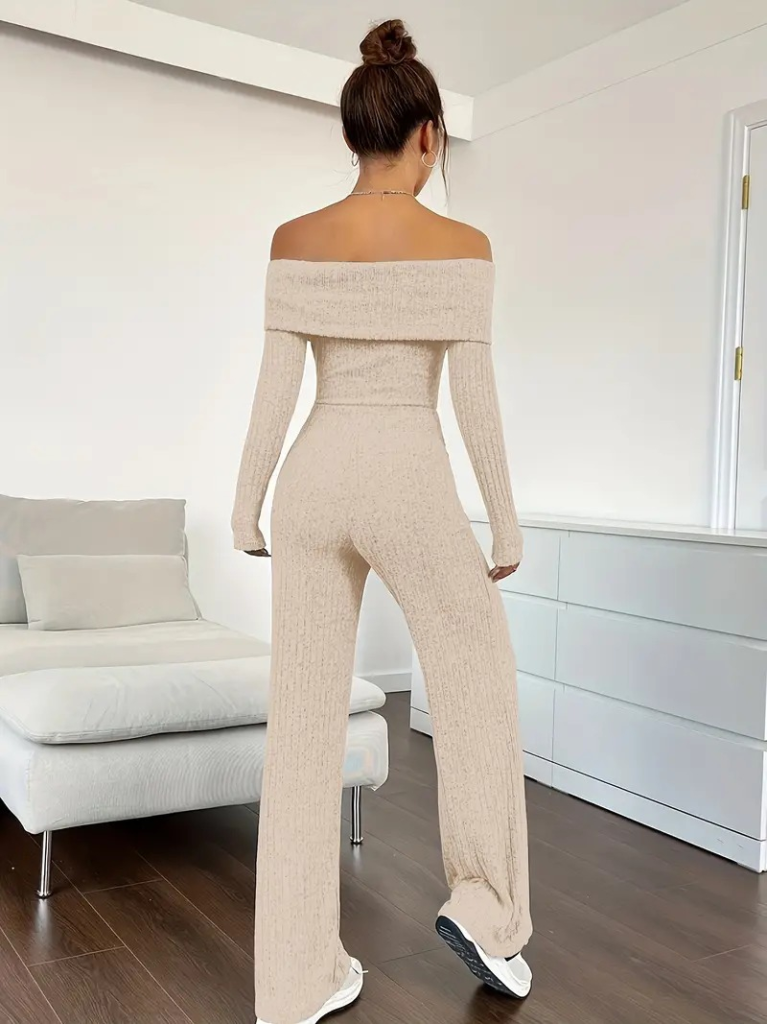 Kadın Uzun Kollu Madonna Yaka şardonlu Kaşkorse Tulum