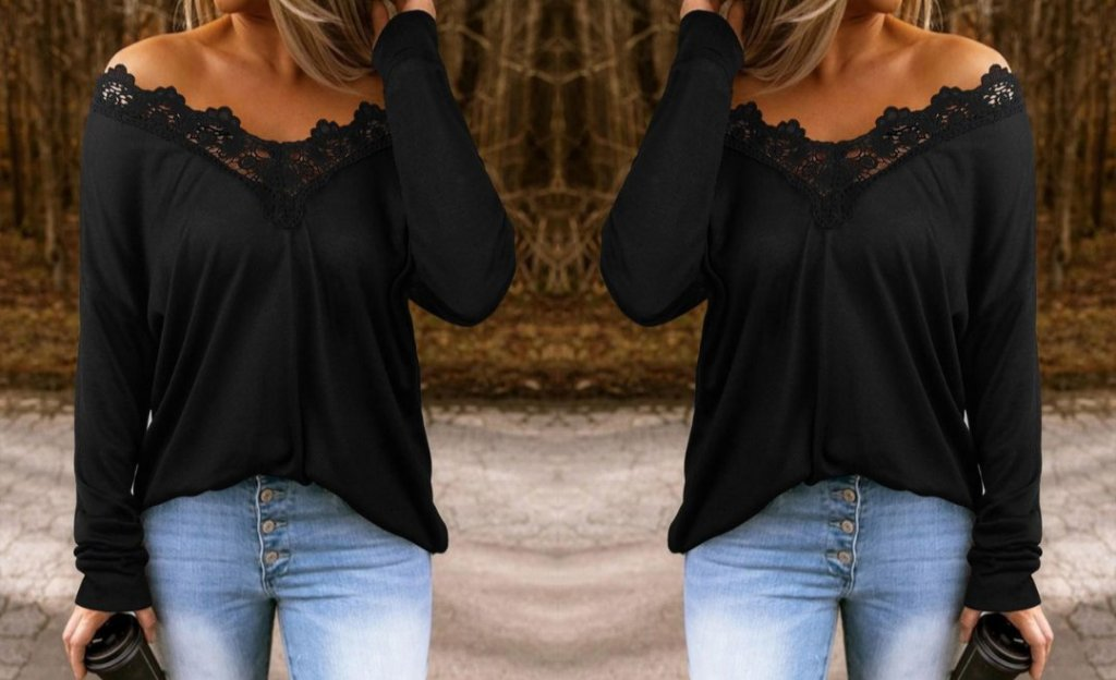 Kadın Uzun Kollu Yaka Güpür Detay Viskon Bluz