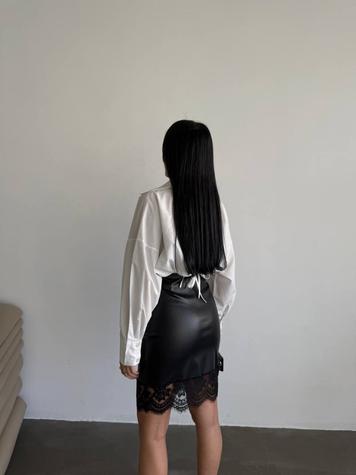 Kadın Yüksek Bel Etek Ucu Dantel Güpür Detay Mini Deri Etek