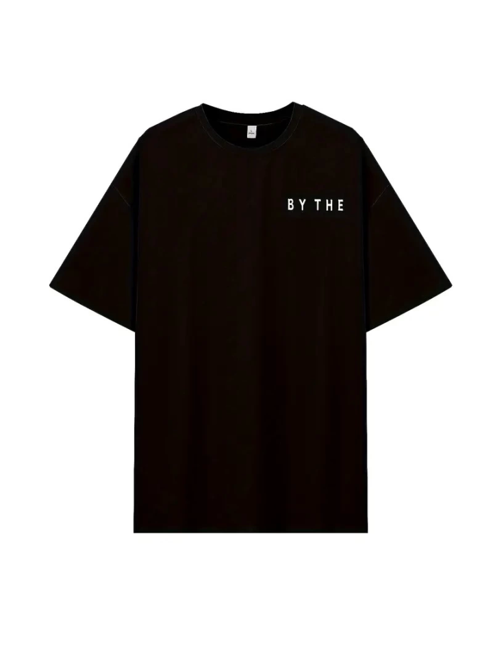 Kadınlar İçin Geniş Kesim Tişört – Kısa Kollu, Bol Kesim, Manzaralı Okyanus Baskı, Günlük Yazlık Üst, Siyah- Siyah