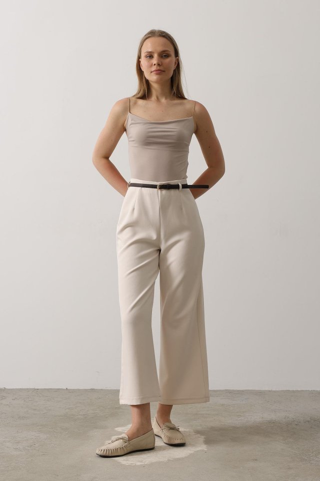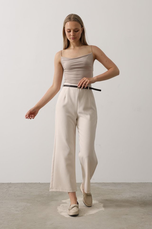Kemer Pens Detaylı Pantolon – Bej