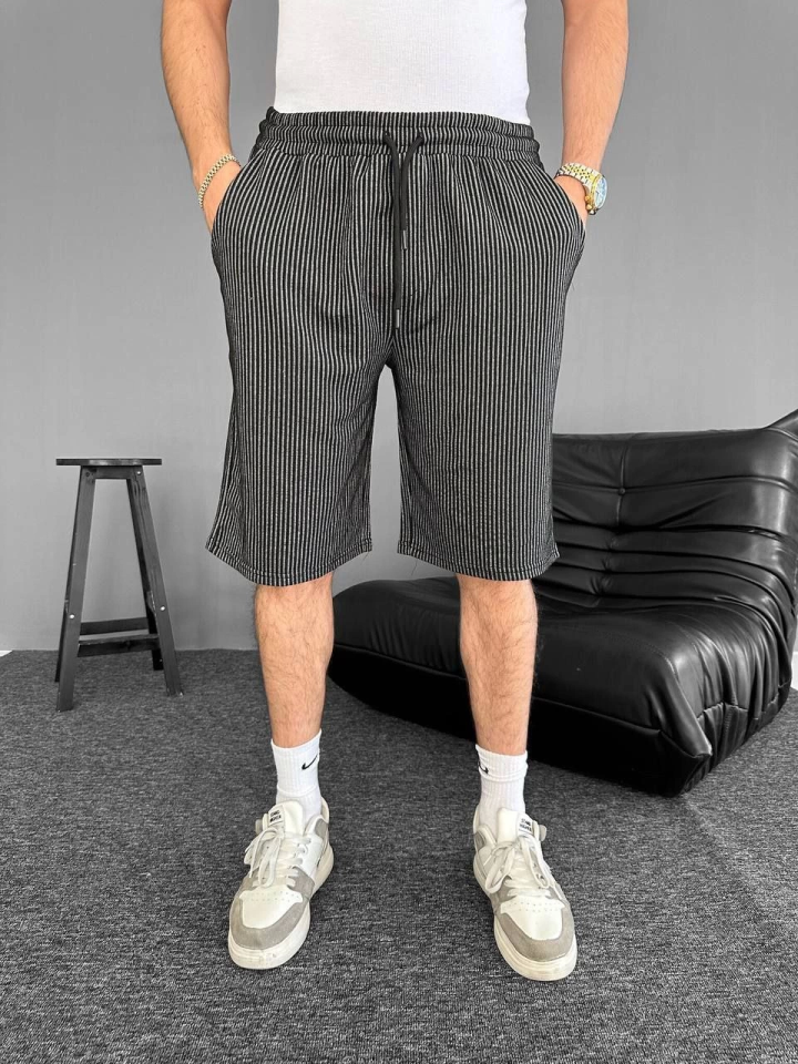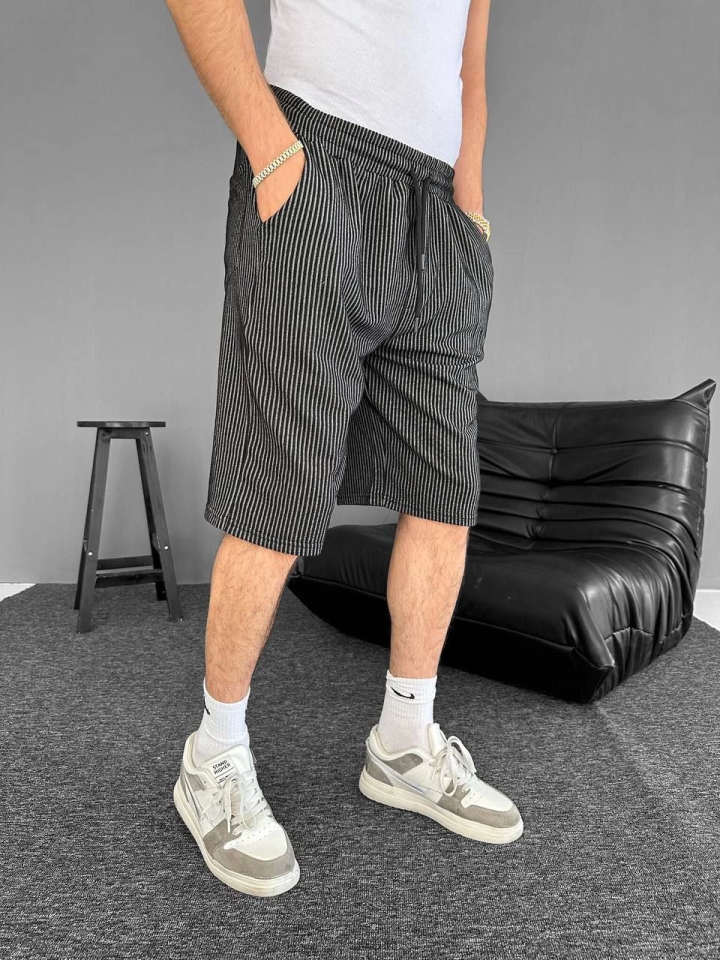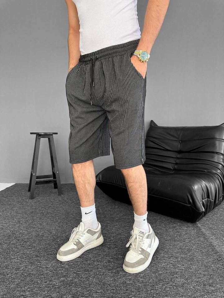 Su Yolu Çizgili Cepli Şort- Siyah
