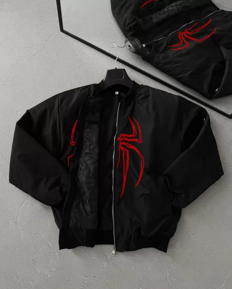 Unisex Uzun Kol Örümcek Baskılı Bomber Ceket